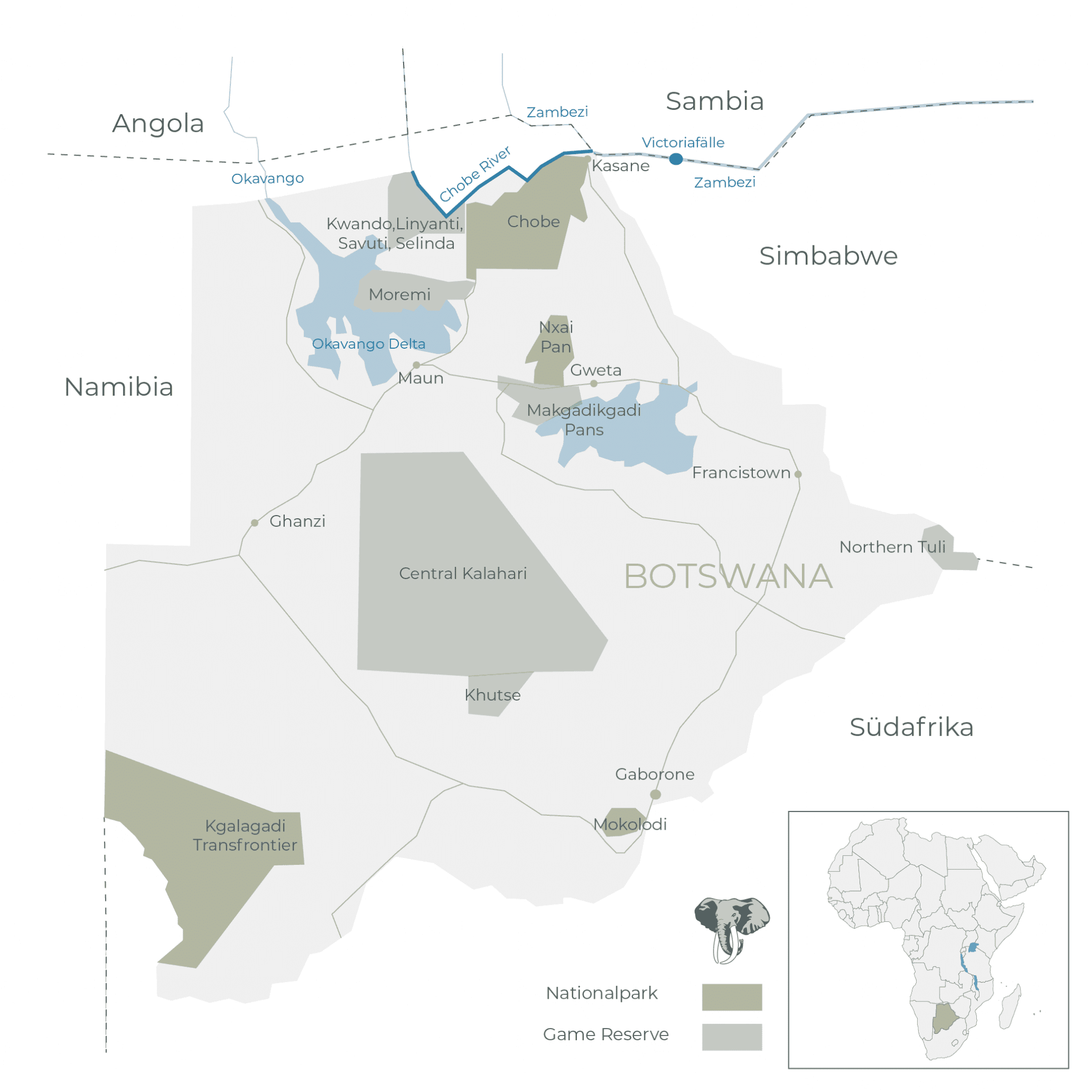 Hier finden Sie detaillierte Informationen zu den schönsten Nationalparks in Botswana, die Sie auf Ihrer Botswana Luxus Safari erleben können. Viel Spaß beim Stöbern und Reise planen!