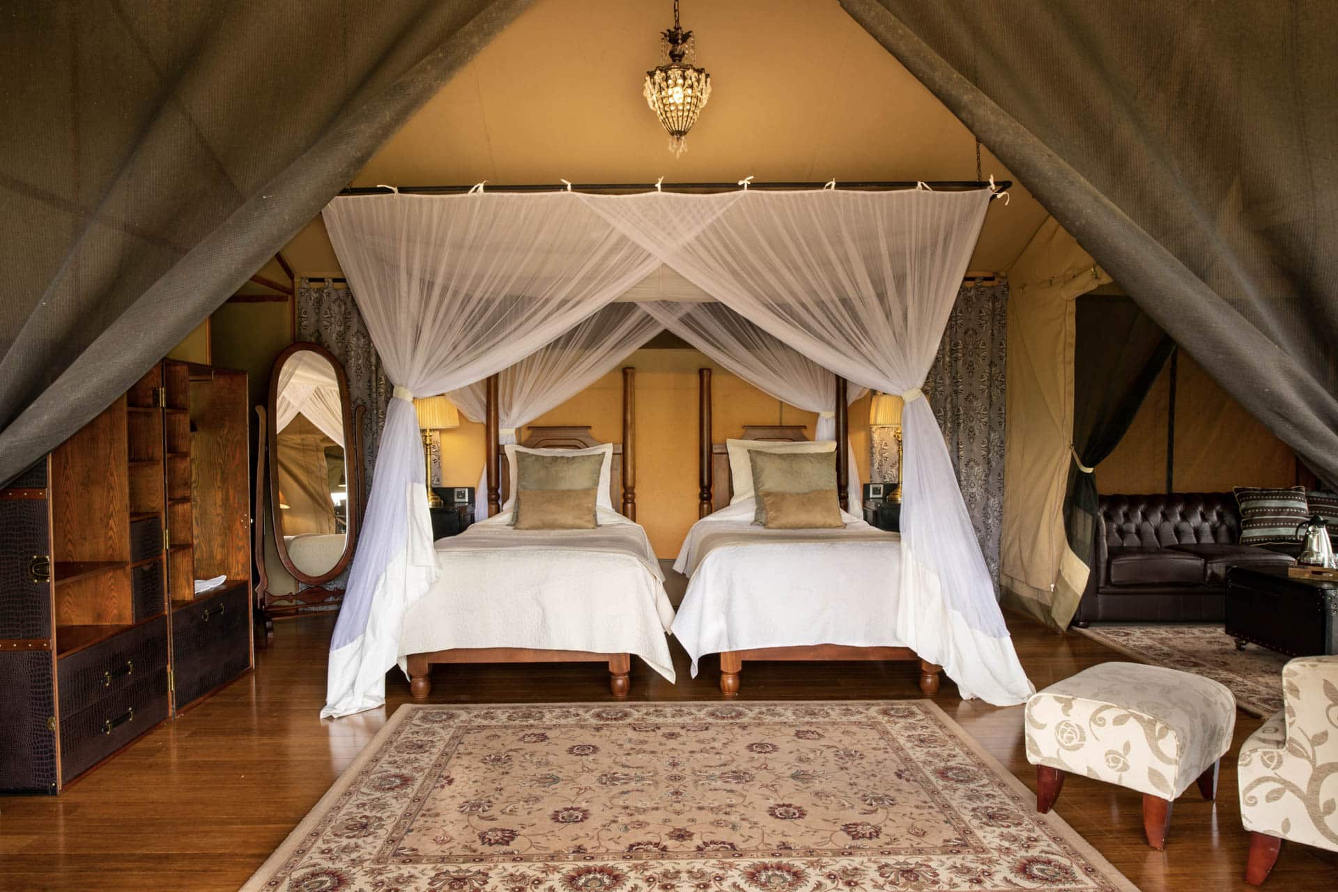Das Sand River Tented Camp aus der Elewana Collection liegt an einem kleinen Fluss, der sich durch eine besondere Lage auszeichnet. Er fließt von den Loita Hills kommend im Osten dem Masai Mara National Reserve zu und bildet praktisch die Grenze zu Tansanias Serengeti Nationalpark. Ihm zu folgen ist größtenteils nicht möglich, womit diese Gegend eine der weniger befahrenen Teile dieses herrlichen Ökosystems darstellt. Im Stil der 1920er Jahre und als Hommage an die unzähligen Hollywood-Filme, erzählt das exklusive Camp von der Ära der Afrika-Abenteurer, die sich Stil und Ambiente leisten konnten, aber fast durchweg mit Großwildjagden zweifelhaften Ruhm erlangt und jedenfalls großen Schaden angerichtet haben. Das Sand River Masai Mara besteht aus 16 großen und stilsicher eingerichteten Zelten, darunter 1 Familienzelt. Eine sehr gute, abgelegene Lage, Exklusivität, Privatsphäre, hervorragender Service und kulinarische Köstlichkeiten zeichnen dieses Safaricamp aus. Das Sand River gehört zur Elewana Collection, die für hochwertige Camps in Ostafrika bekannt sind.