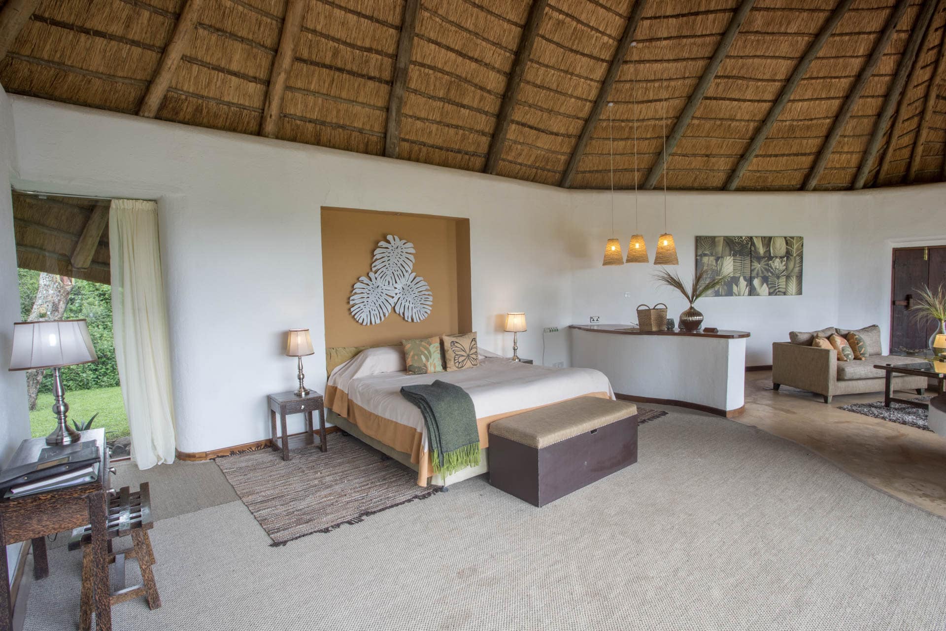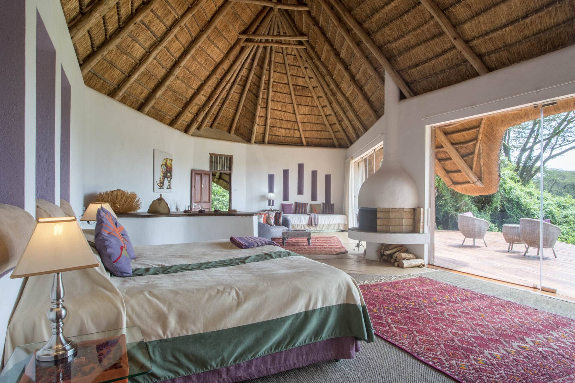 Mit nur fünf zeitgenössischen und geräumigen Zimmern können die Gäste Exklusivität erwarten. Jede Suite der Solio Lodge verfügt über deckenhohe Fenster, die die dramatischen Landschaften der Natur direkt ins Zimmer holen. Geräumige Sitzecken bieten die perfekte Kulisse, um nach einem erlebnisreichen Tag zu entspannen. An den kühleren Abenden schafft ein Kamin eine gemütliche Atmosphäre.