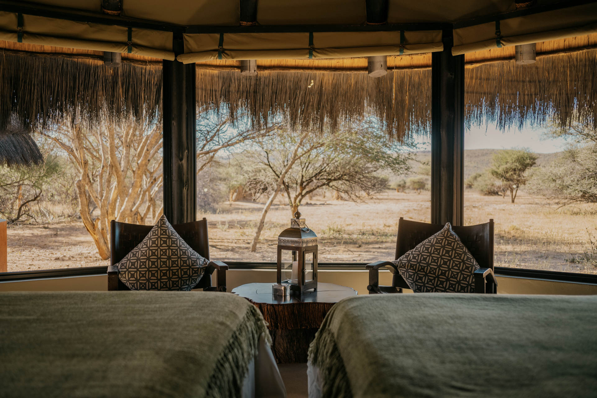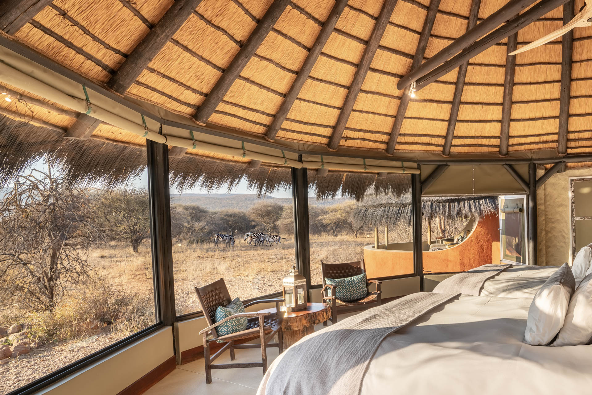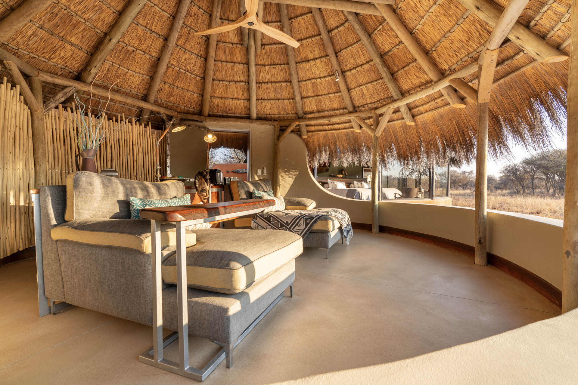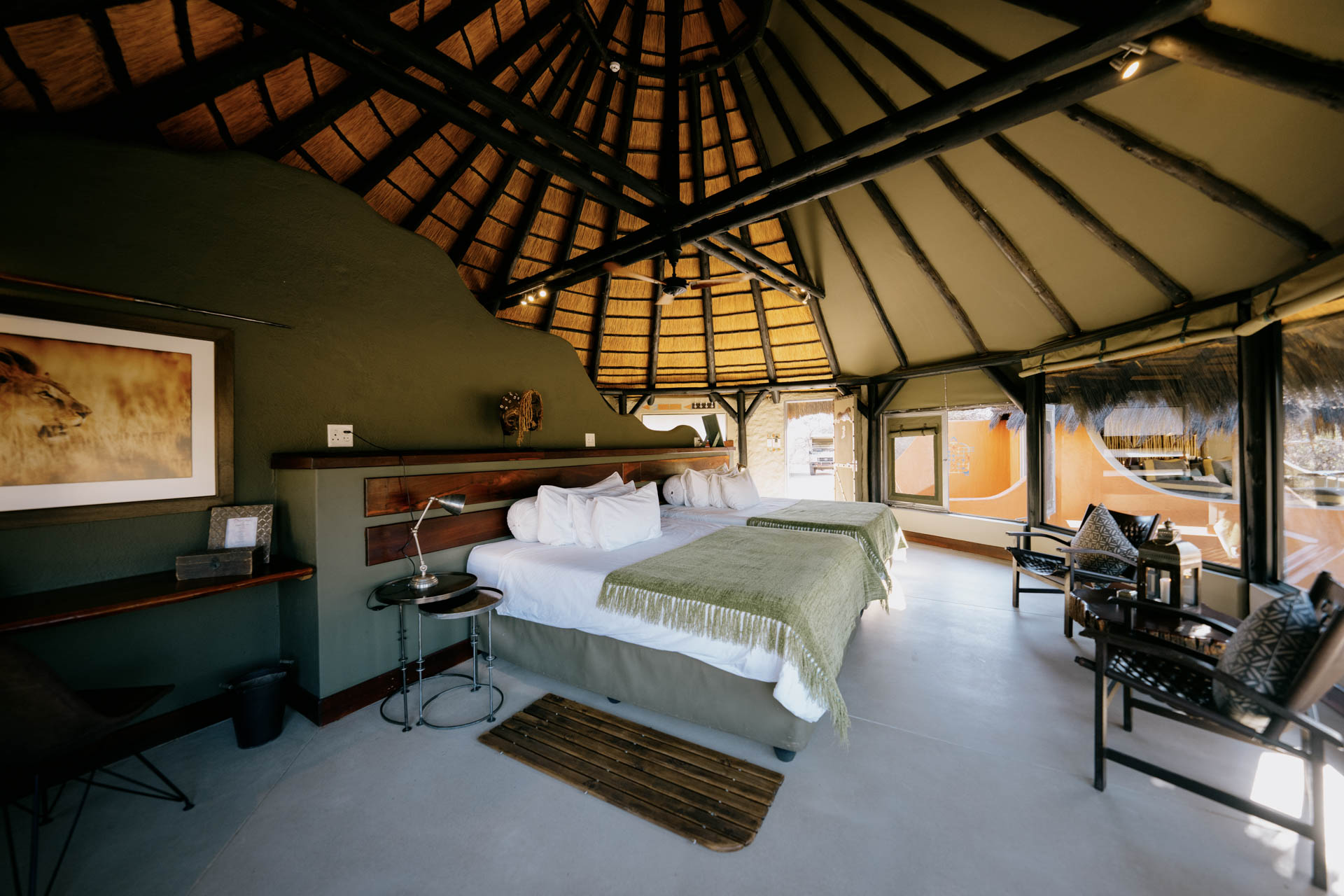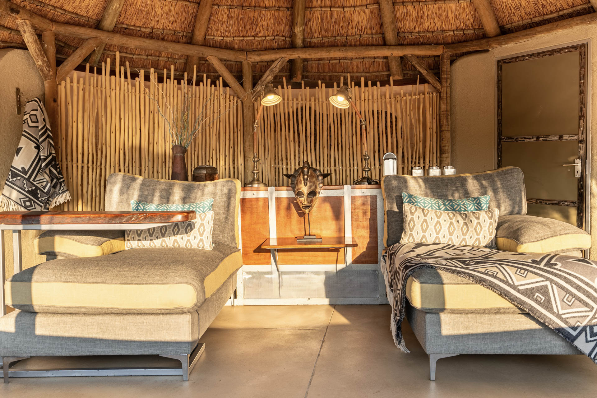 Mit nur 9 luxuriösen Chalets bietet das Okonjima Bush Camp eine exklusive Unterkunft im traditionellen Safari-Stil. Die reetgedeckten Chalets bieten viel Privatsphäre, sind sehr großzügig angelegt und haben alle eine separate Lapa (Aufenthaltsraum), von der aus man ganz privat die Aussicht genießen kann.