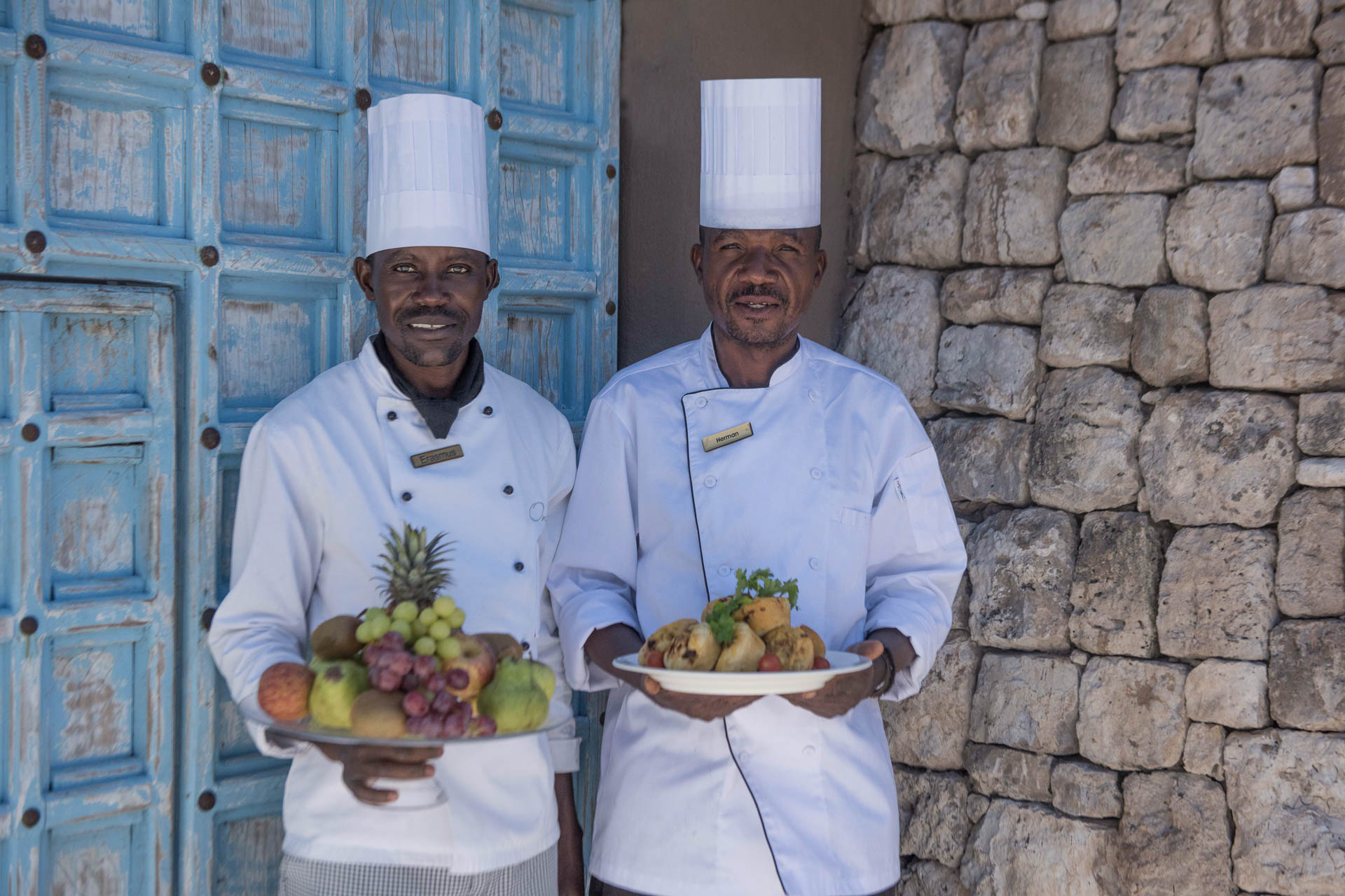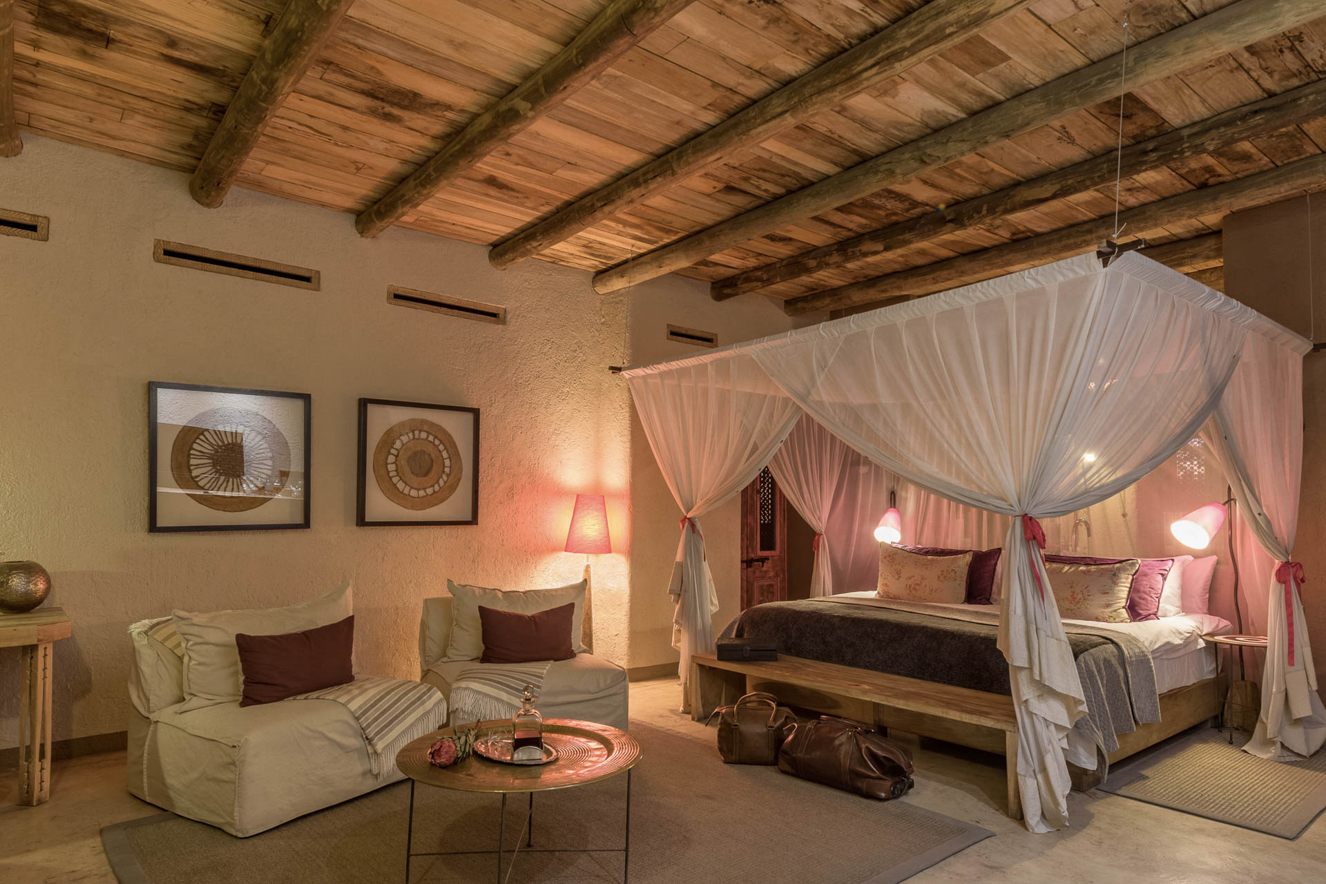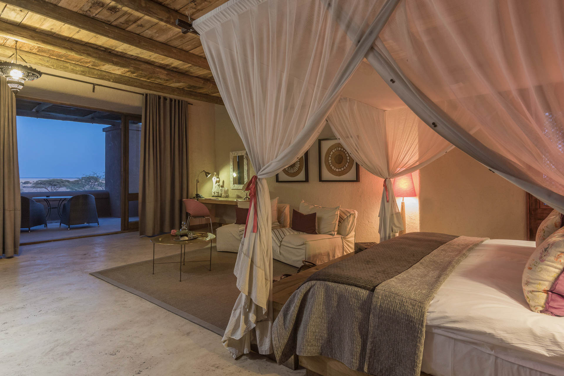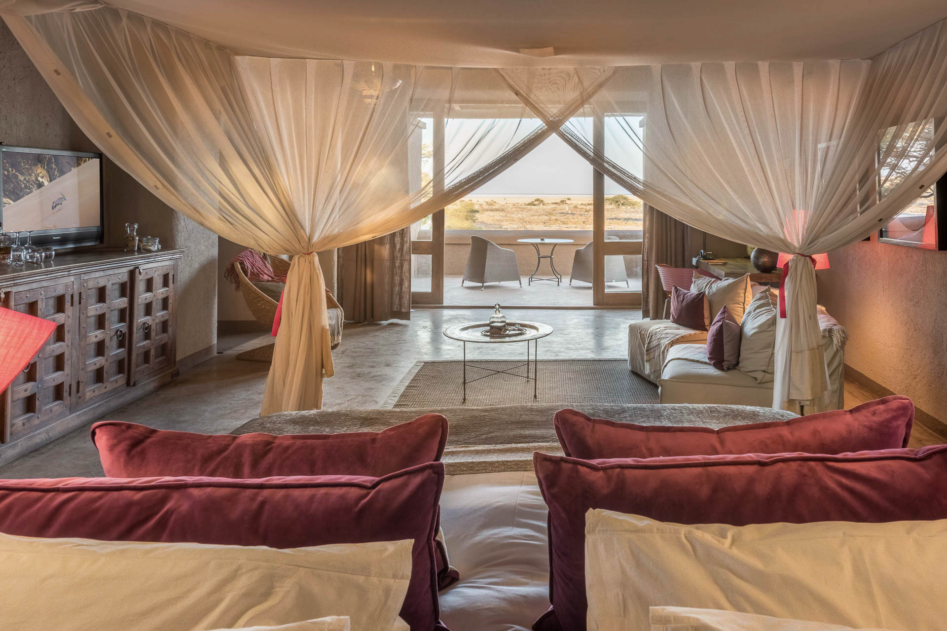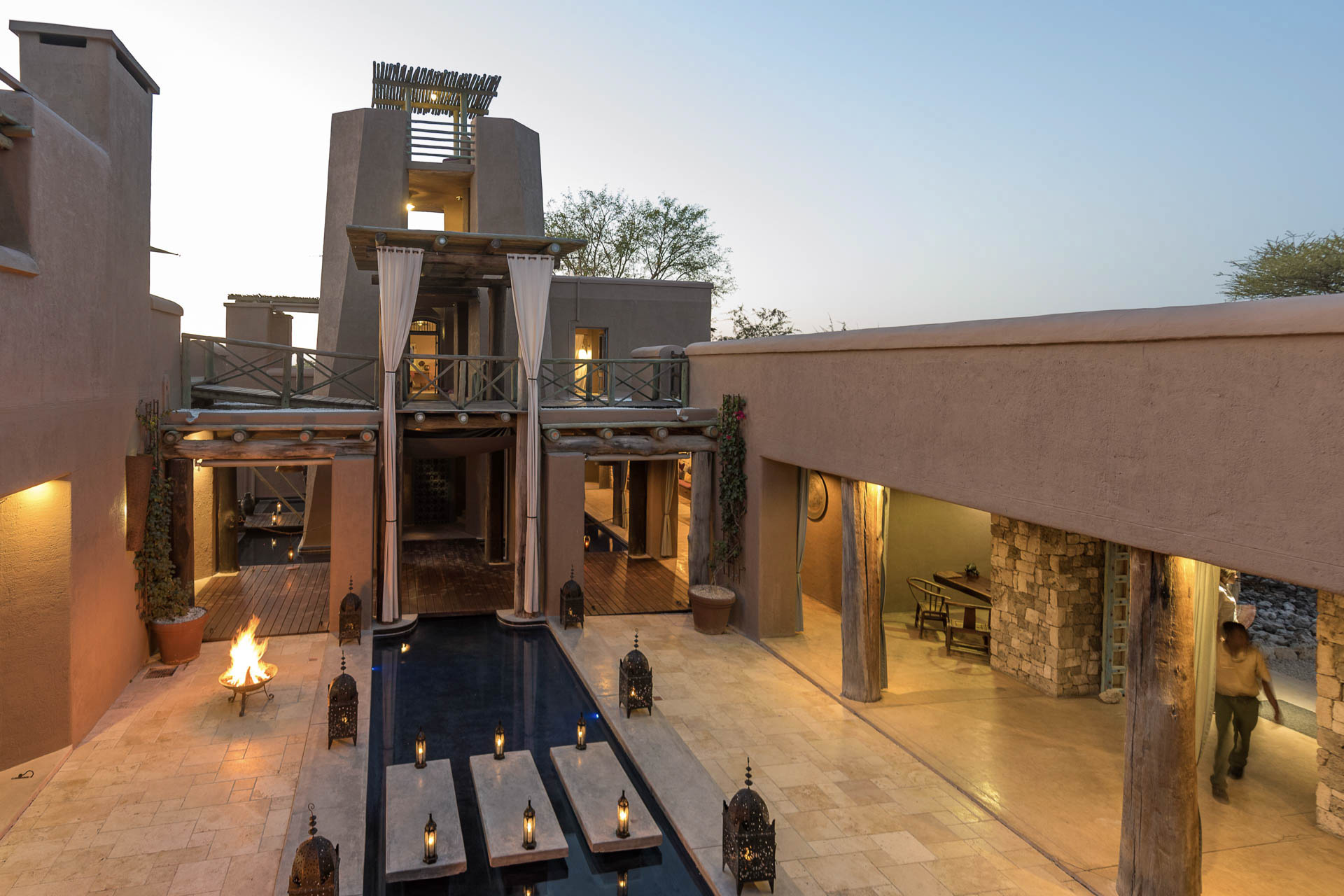 Das Onguma The Fort ist durch seine Architektur wirklich etwas Einzigartiges und Besonderes in Namibia. Bei der Ankunft im Fort werden Sie nicht nur durch die freundlichen Mitarbeiter, sondern auch durch massive, kühlende Wände, Bachläufe und einen großen Turm mit der Aussicht auf den Etosha National Park und Fisher’s Pan begrüßt. Das Fort wird Sie in vielerlei Hinsicht überraschen – das Interior Design ist durchweg von marokkanischen und indischen Einflüssen geprägt. Ein Hauch von 1001 Nacht am Etosha Nationalpark.