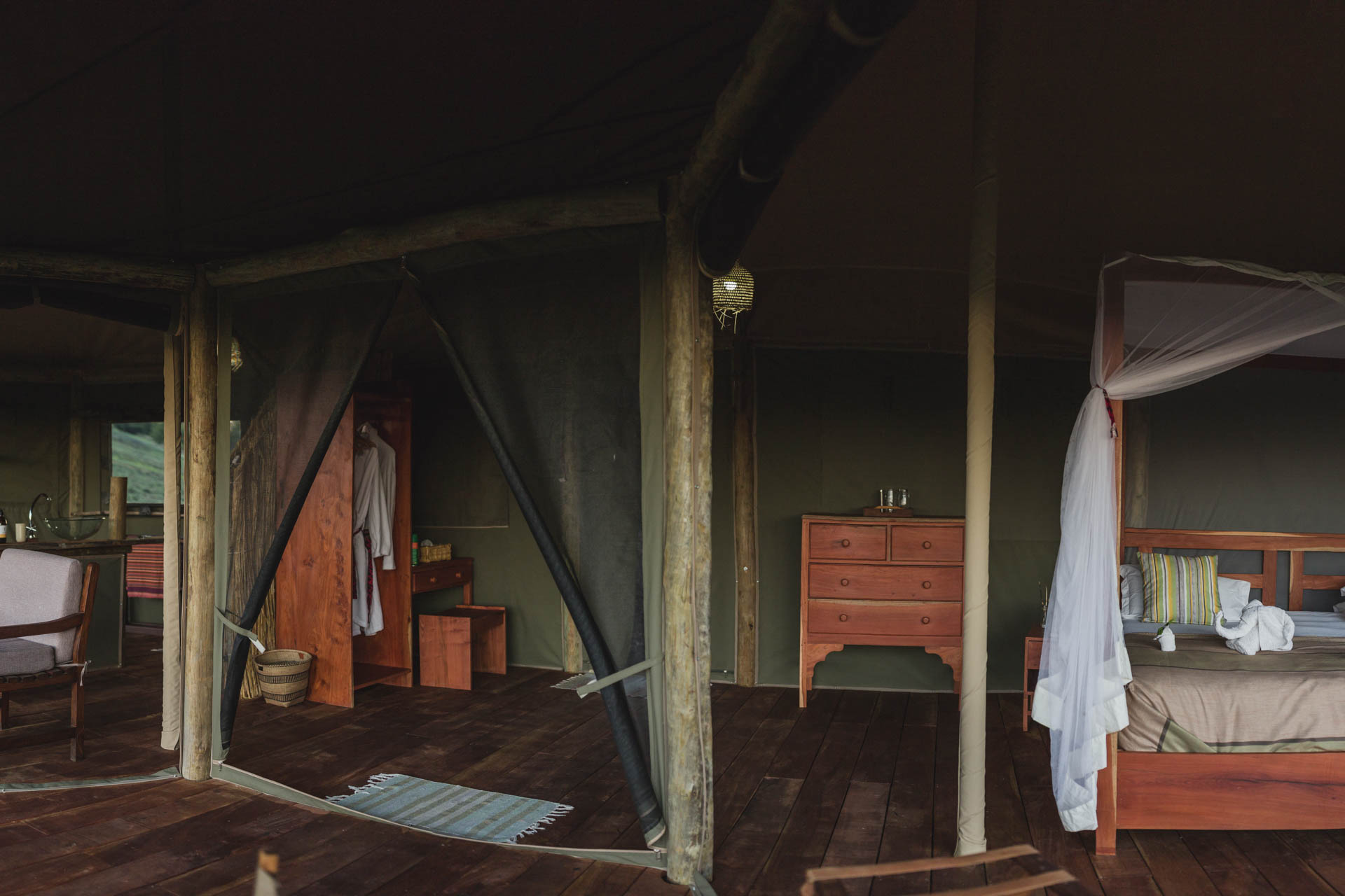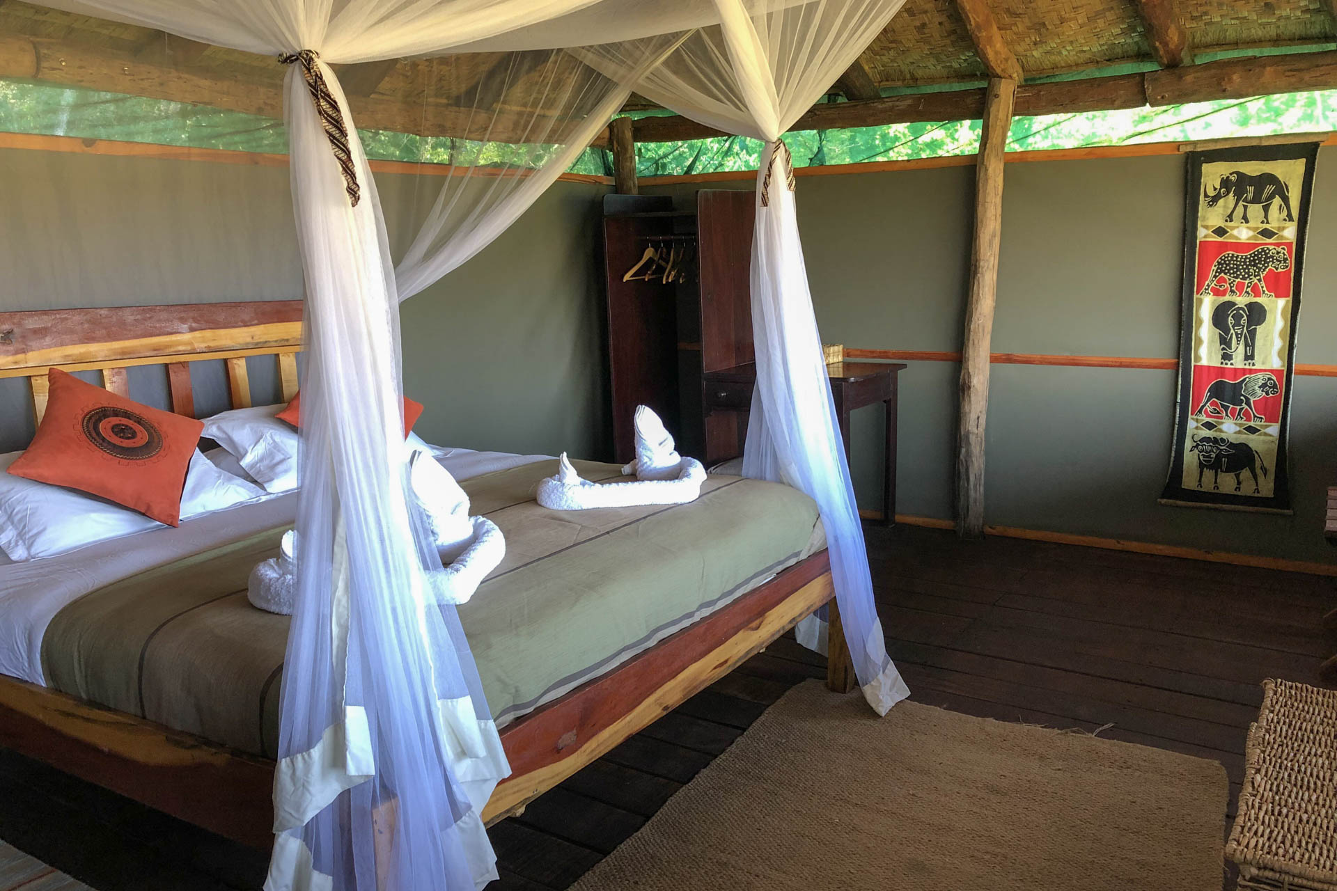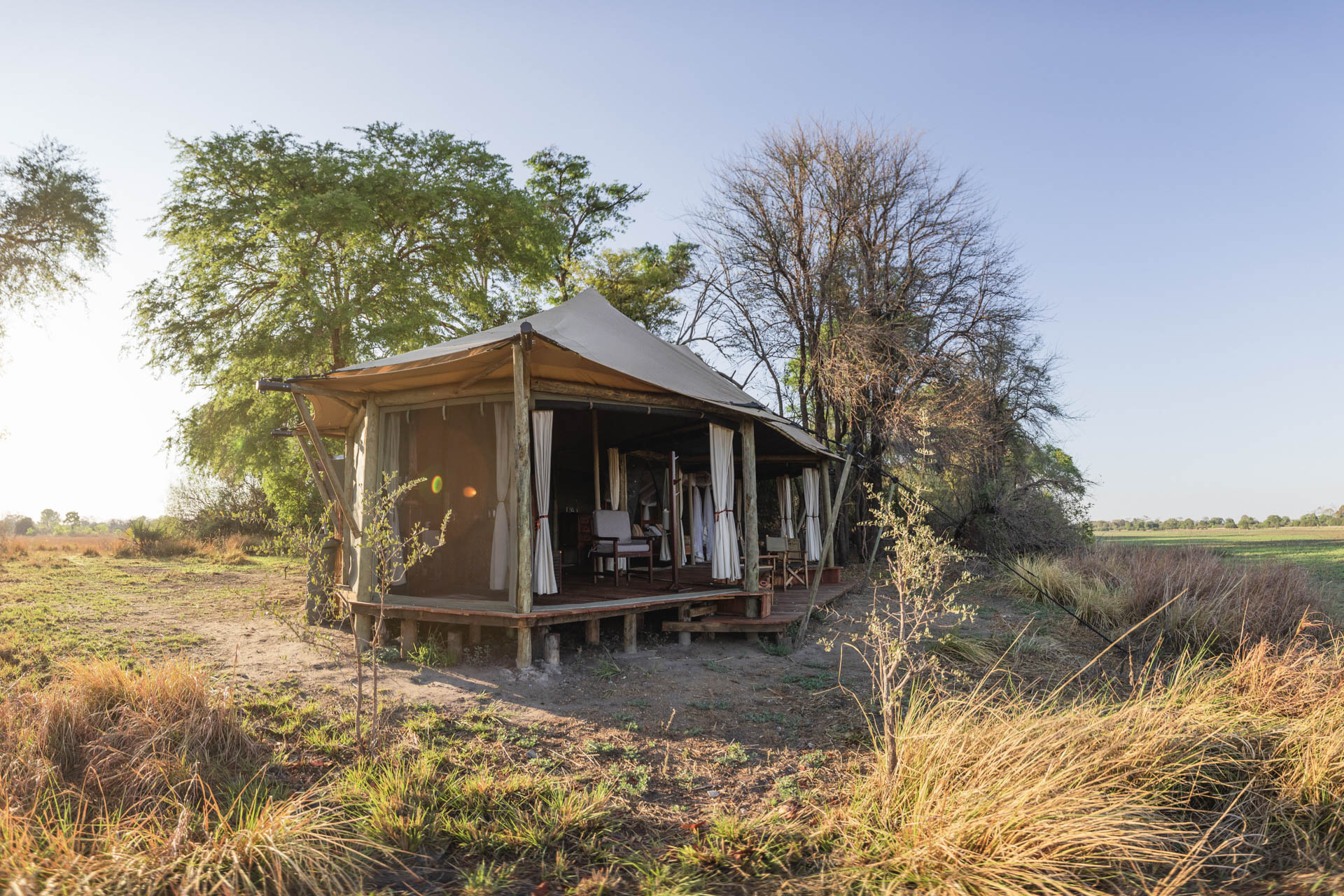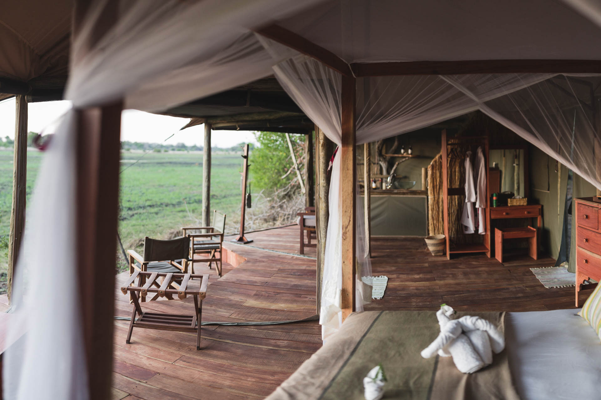 Das Musekese Camp befindet sich quasi in Alleinlage im zentralen Bereich des Kafue Nationalparks in Sambia. Das intime Busch-Camp bietet 5 sehr schöne Zelte mit Blick auf die „Eden Lagoon“, an der sich ganztägig Tiere tummeln. Großzügigkeit, Privatsphäre und einen Hauch von Luxus zeichnen die Zelte aus, denn sie verfügen über fließendes Wasser und Strom. Die Einrichtung ist modern und dank natürlicher Materialien gleichzeitig authentisch. Der Gemeinschaftsbereich unter schattigen Bäumen lädt zum Verweilen und zur Tierbeobachtung ein. Das Essen ist hervorragend und wird meist gemeinsam mit anderen Gästen eingenommen.