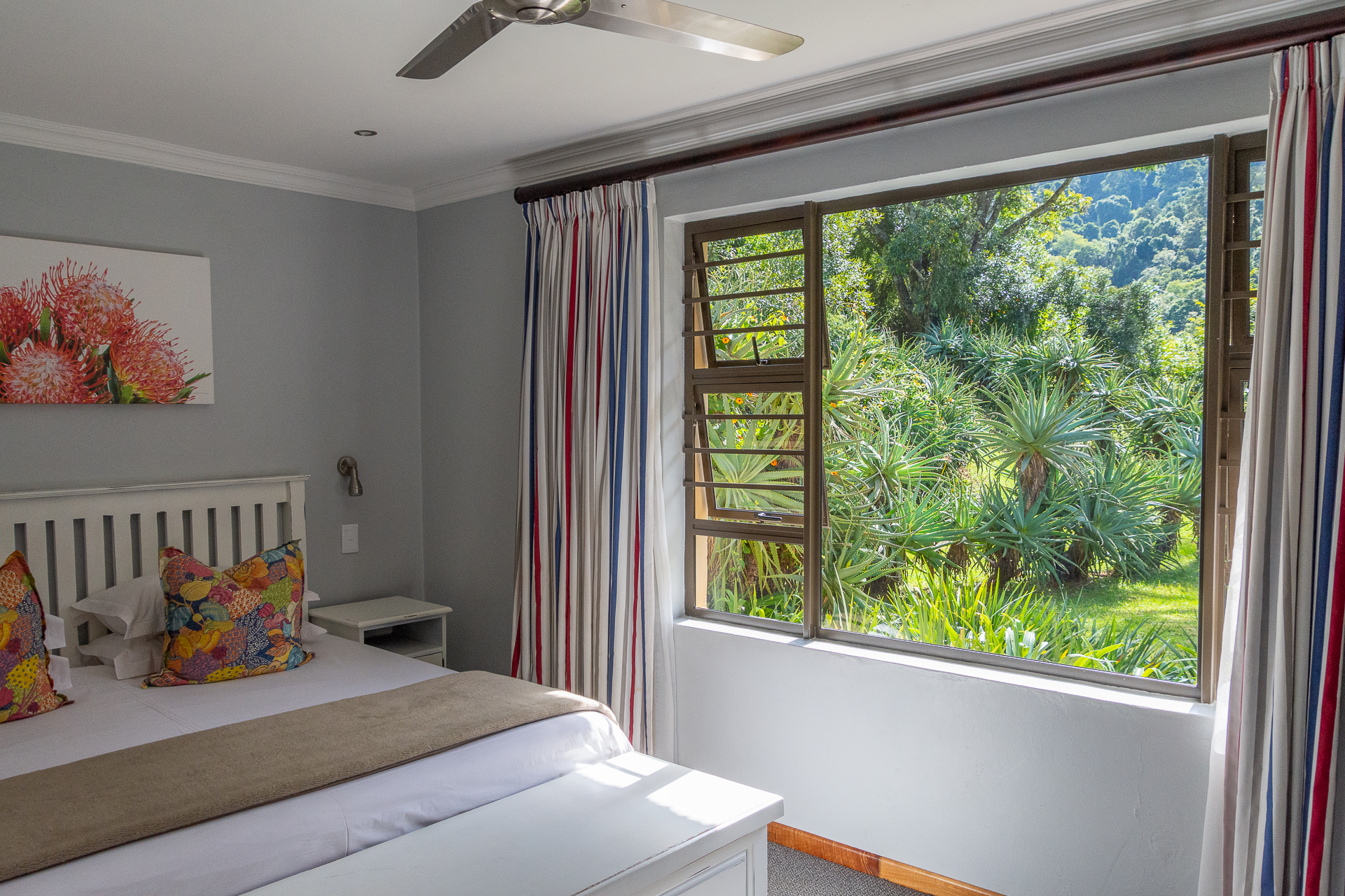 Die reetgedeckten Chalets und Häuser verteilen sich auf der weitläufigen Anlage und unterteilen sich in drei Zimmerkategorien. Die Standard Rooms bieten ausreichend Platz und blicken vom Balkon aus meist auf weitere Häuser. Die Superior Rooms sind etwas größer und sind zusätzlich mit einem Sofa und TV ausgestattet. Der Blick vom Balkon oder der privaten Terrasse richtet sich in den Garten oder auf die Drakensberge. Die Superior Suites bieten zudem einen Kamin, an dem man den Abend gemütlich ausklingen lassen kann. Sie liegen etwas abseits und zeichnen sich durch Ruhe, Privatsphäre und Panoramablick aus. Alle Zimmerkategorien sind jeweils auch als Familienkonfiguration buchbar. Besonders die Family Suite Cottages bieten viel Raum und Privatsphäre für einen perfekten Familienurlaub. Alle Zimmer sind mit farbenfrohen Akzenten modern und charmant eingerichteten.