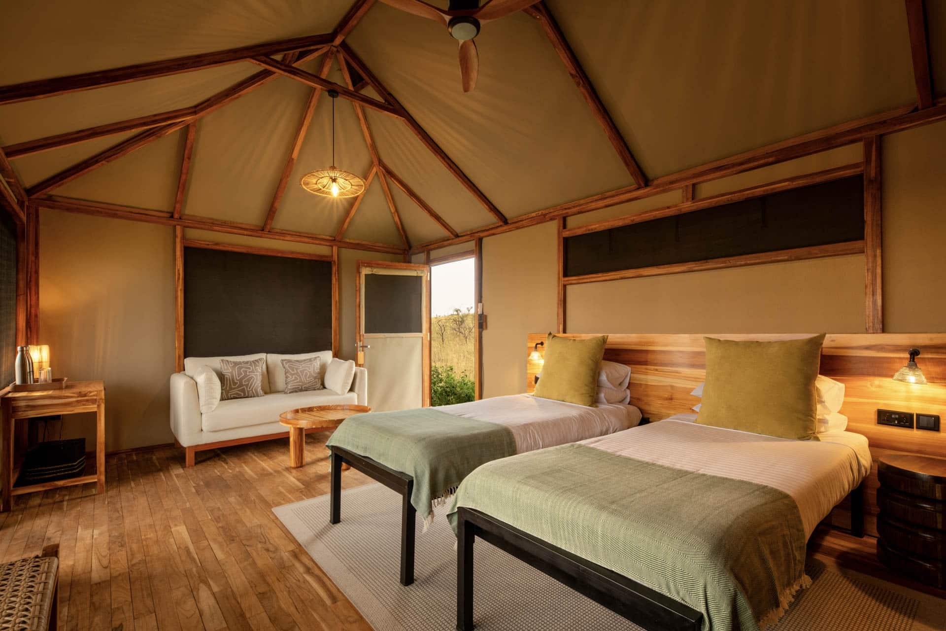 Das Nyikani Central Camp (vormals Kiota Camp Serengeti) ist ein permanentes Camp in der zentralen Serengeti, etwas nördlich von Seronera. Das Camp besteht aus 10 sehr großzügigen Zelten und einem Familienzelt, das durch ein gemeinsames Wohnzimmer miteinander verbunden ist. Alle Zelte sind mit eigener Terrasse, en-suite Badezimmer mit Spültoilette und fließendem Wasser ausgestattet. Die Dusche ist eine traditionelle Bucket-Shower, in die warmes Wasser befüllt wird. Das stilvolle Nyikani Central Camp bietet Komfort und den Hauch von Explorer-Feeling an einem außergewöhnlich schönen Ort. Alle Möbel wurden in Arusha entworfen und produziert. Das Camp wird mit Solar betrieben, besitzt dennoch einen Generator aus Backup. Im Gemeinschaftszelt befindet sich das Restaurant und ein Loungebereich mit einer kleinen Bibliothek. Wenn sich der Tag dem Ende neigt, trifft man sich am Lagerfeuer um den Geräuschen der Wildnis zu lauschen und genießt – mit etwas Glück – eine sternklare Nacht im Herzen des Serengeti Nationalparks. Das tolle Preis-Leistungsverhältnis macht es möglich.