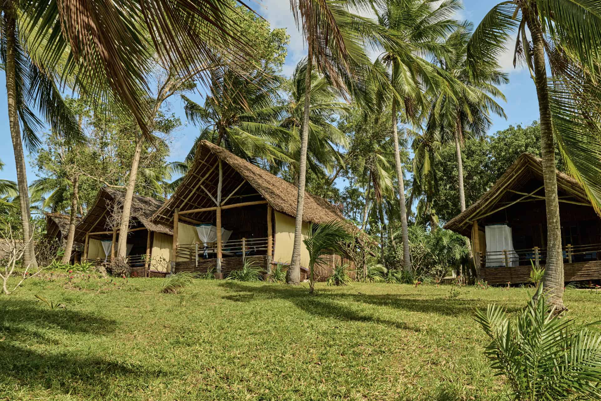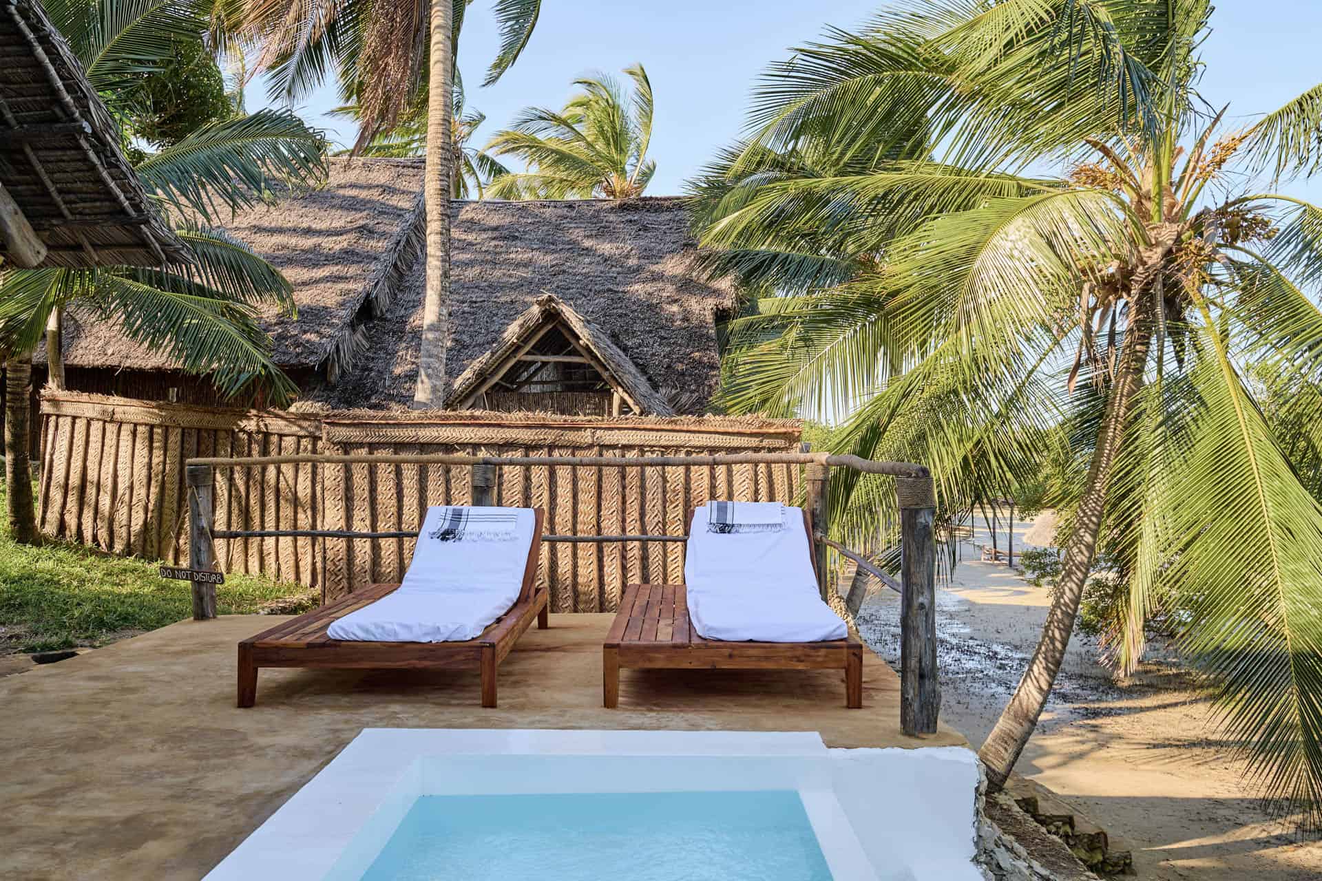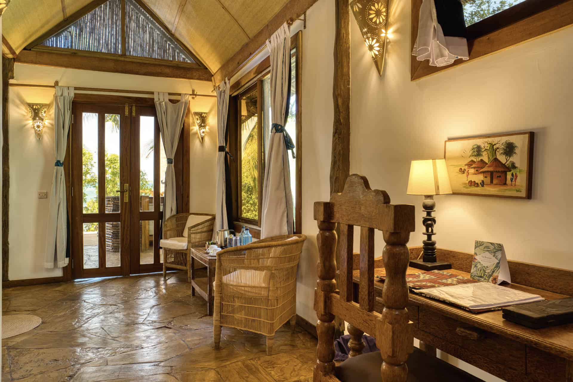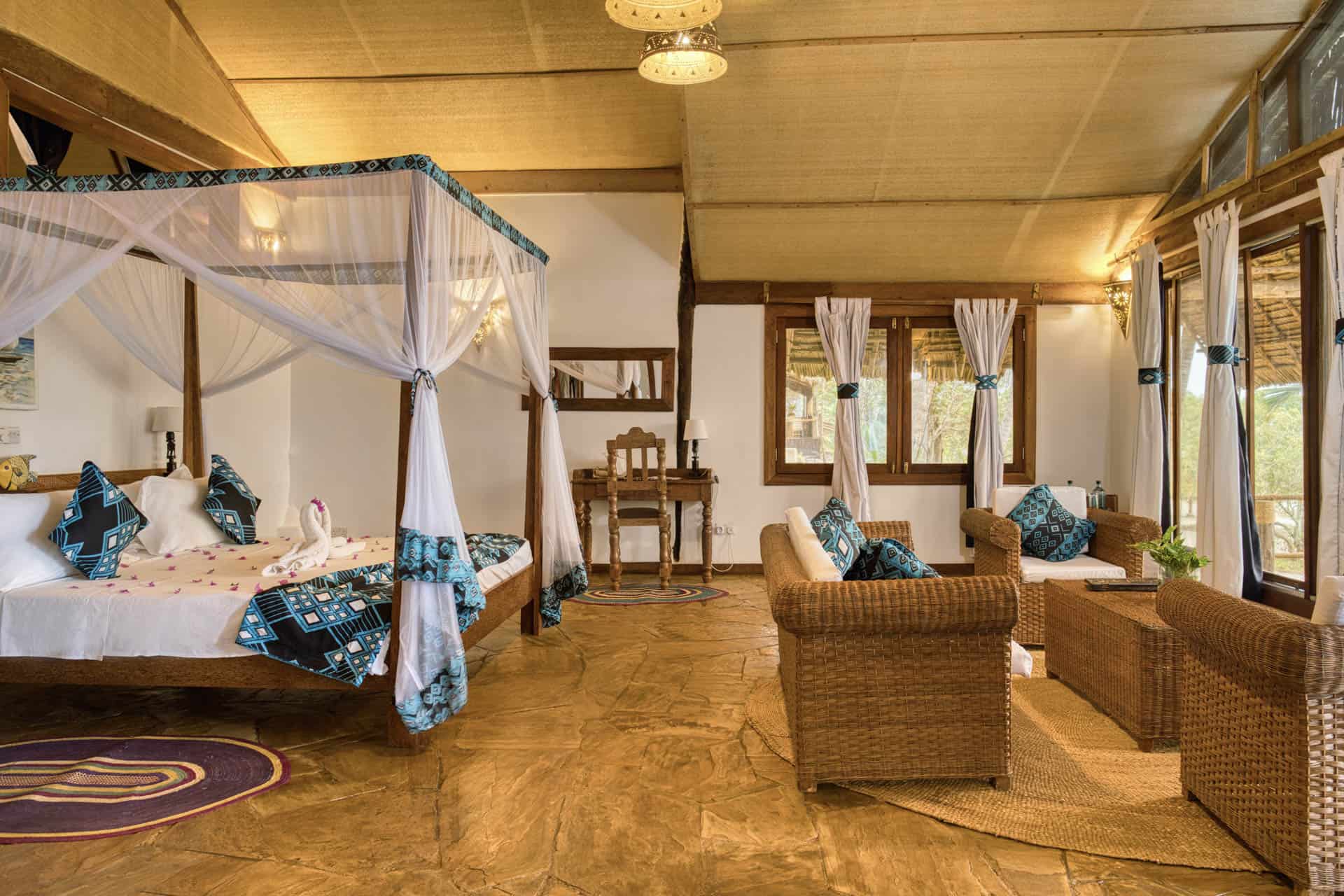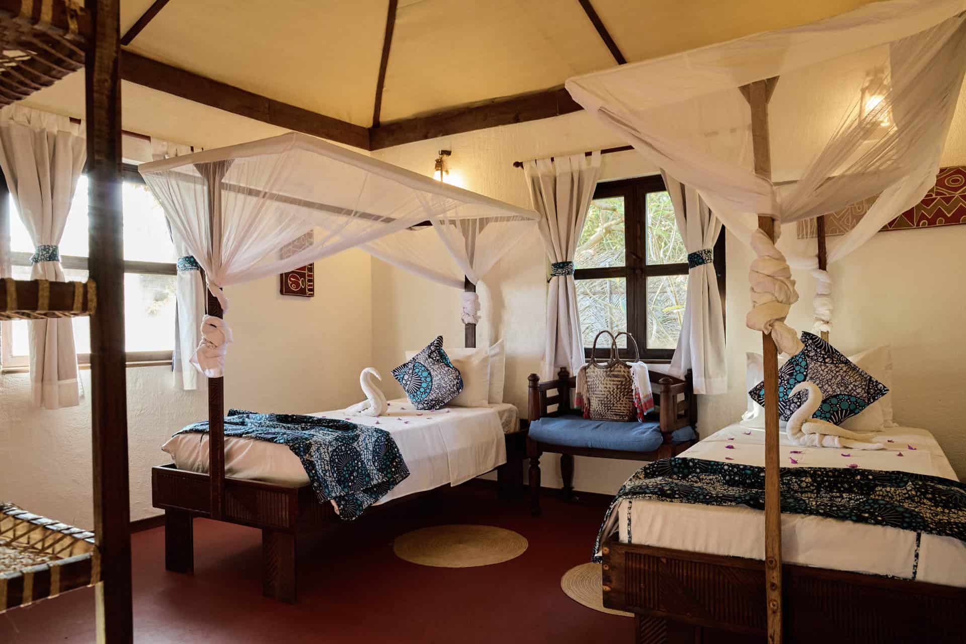 Die zwölf Bungalows befinden sich in einer traumhaften Hanglage, eingebettet im grünen Kokospalmenwald, und bieten alle einen herrlichen Meerblick. Die Zimmer sind stilvoll mit handgeschnitzten und antiken Möbeln ausgestattet. Auf den großzügigen privaten Terrassen laden traditionelle Zanzibaribetten, Stühle, Tische und ein gemütlicher Sessel zum Verweilen ein. Jedes Zimmer verfügt über ein großes Badezimmer, Deckenventilatoren im Zimmer und auf der Terrasse sowie WLAN.