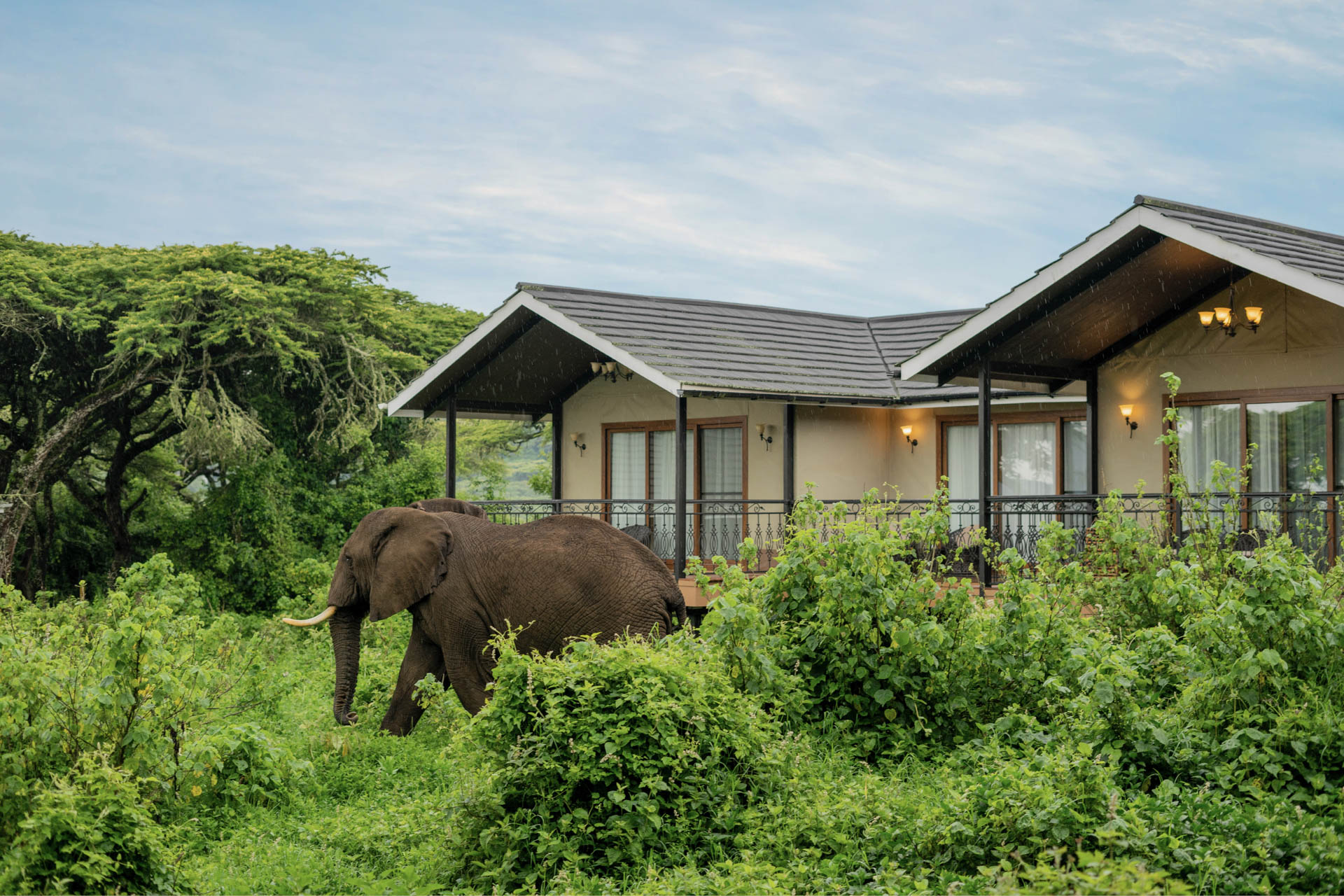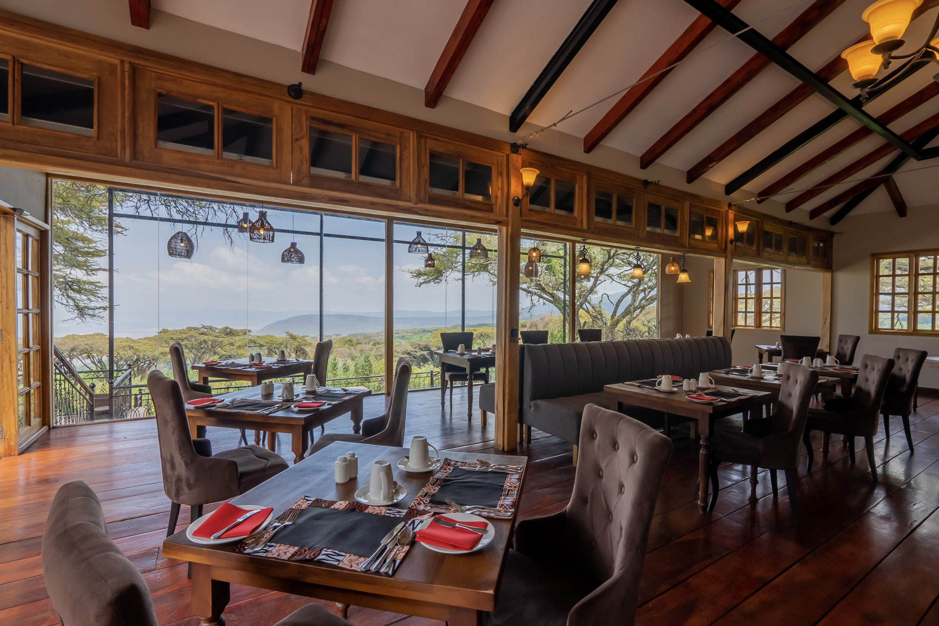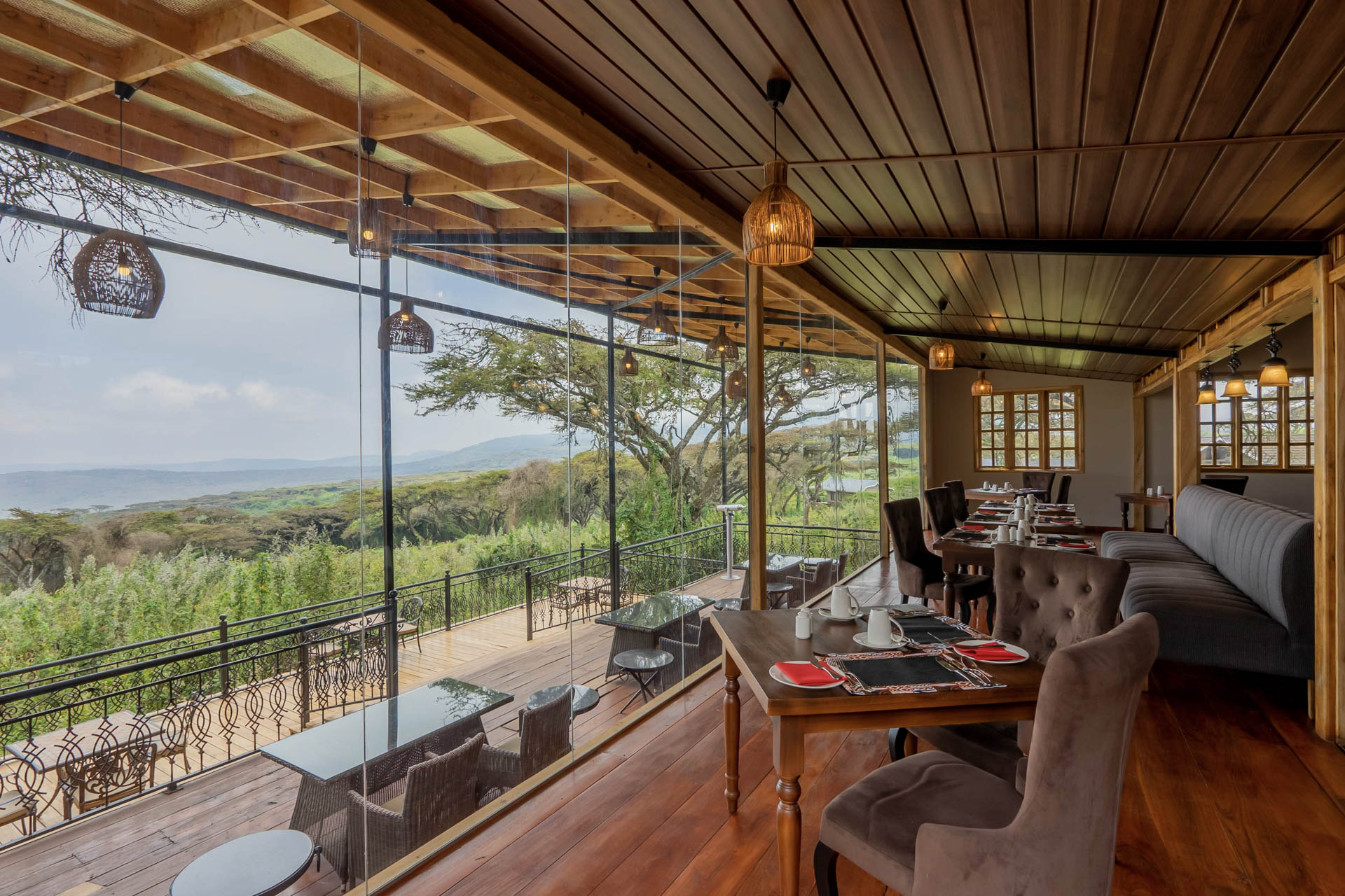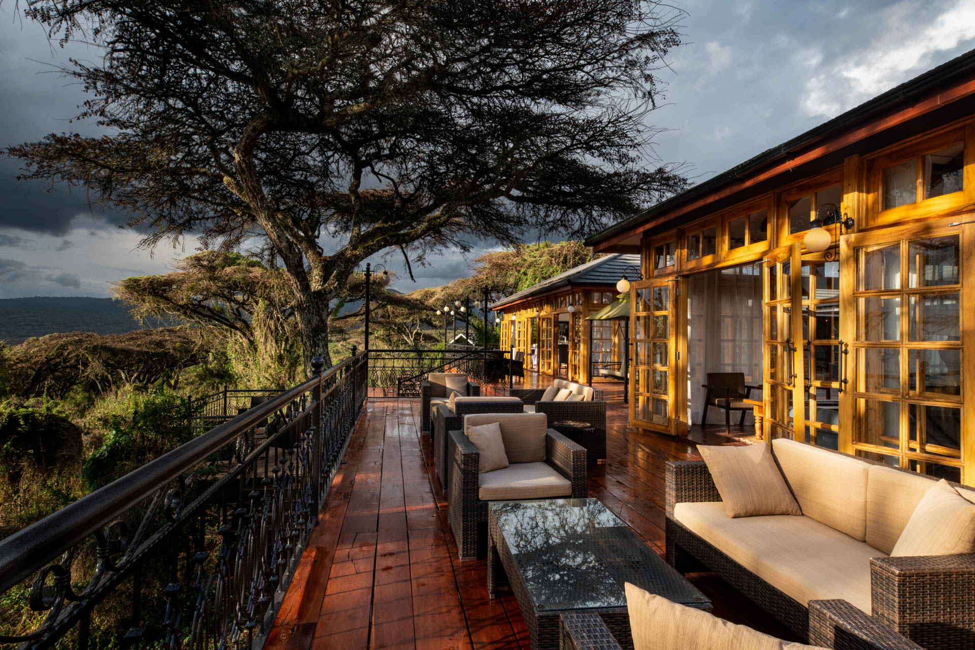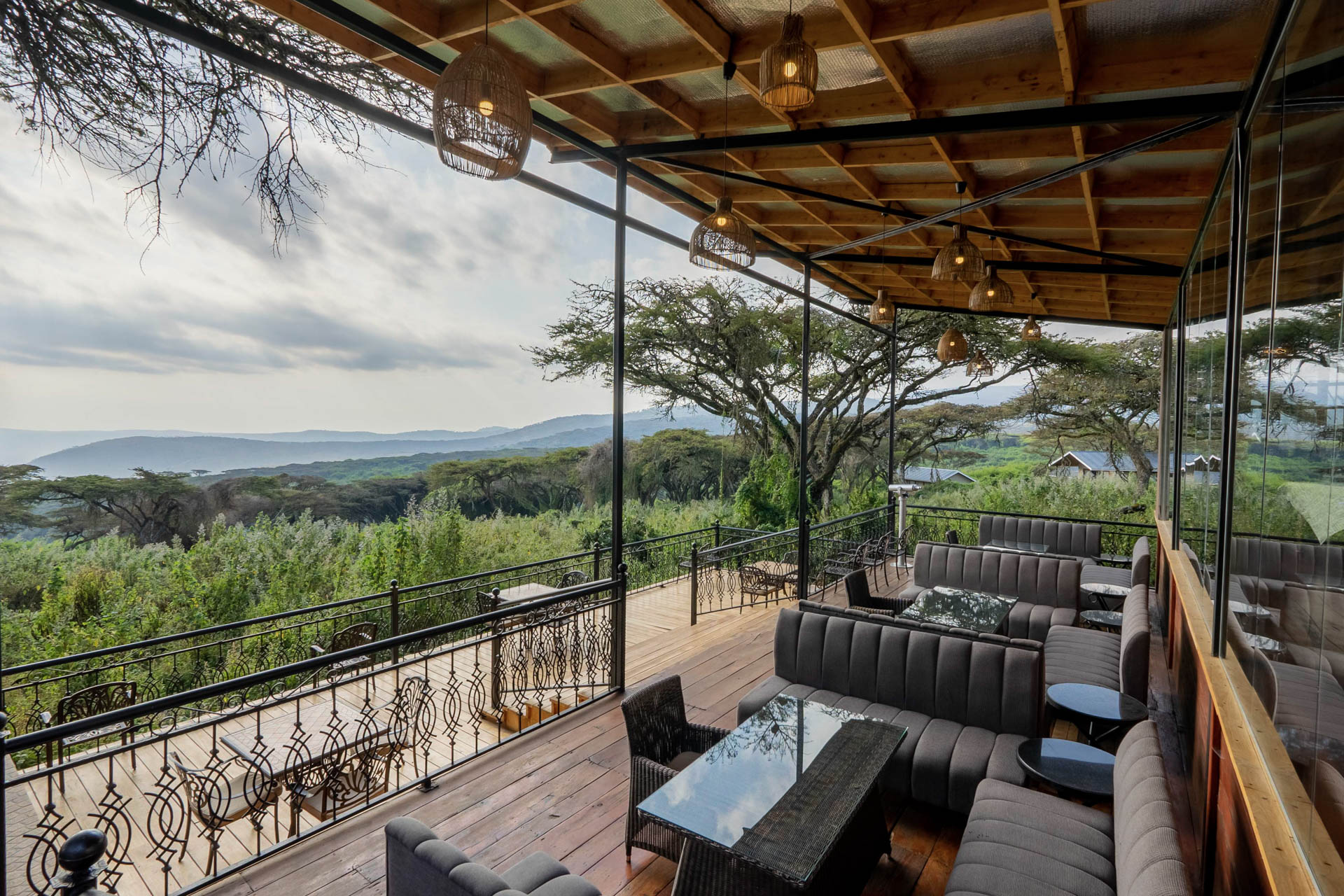 Im zentralen Bar- und Loungebereich genießen Sie je nach Standort gute Ausblicke in den Ngorongoro Krater und den silbrig schimmernden Magadisee. Mit etwas Glück lässt sich von hier aus bereits das erste Wildtier entdecken – darunter Elefanten, Büffel oder sogar die seltenen Spitzmaulnashörner, die im Ngorongoro Schutzgebiet zu den wertvollsten Tierarten zählen.