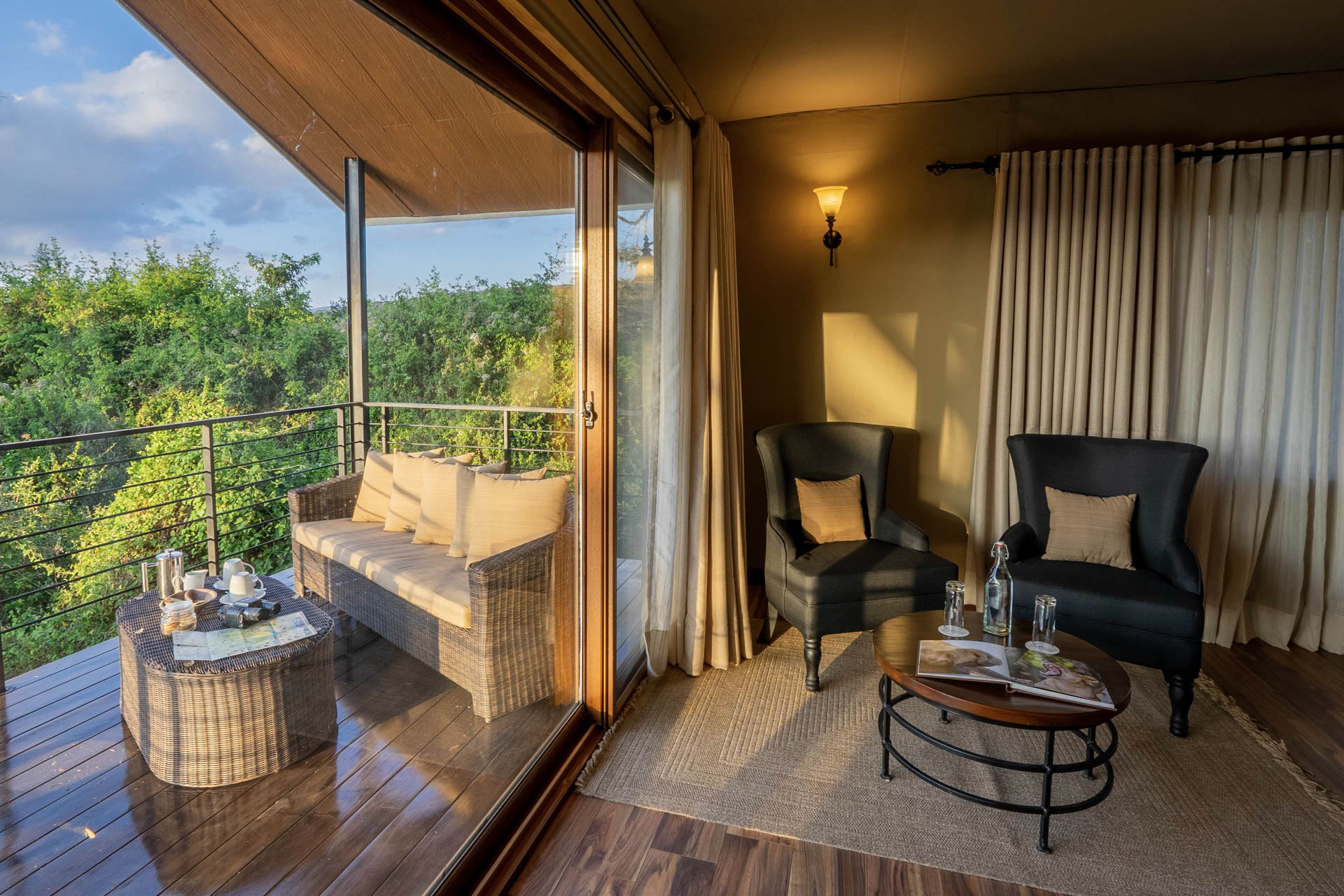 Die 27 geräumigen Zelte sind geschmackvoll eingerichtet und verbinden klassisches Safaridesign mit modernem Komfort. Große Fensterfronten und private Veranden eröffnen Ausblicke auf die umliegenden Ngorongoro Highlands, während warme Naturtöne und hochwertige Materialien für eine entspannte Wohlfühlatmosphäre sorgen.