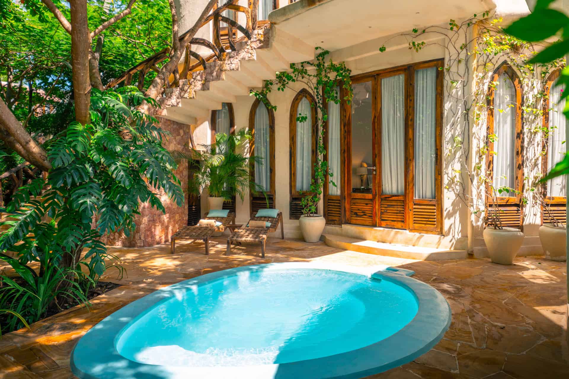 Der Name der Villa Mbingu leitet sich aus „himmlicher Himmel“ auf Suaheli ab. Ein besseres Wort lässt sich wohl kaum finden. Die außergewöhnliche Villa erstreckt sich über 4 Etagen und bietet Platz für 4 Gäste – auf Wunsch für 6 Gäste. Die beiden luxuriös eingerichteten, mit lokalem Kunsthandwerk dekorierten, Schlafzimmer verfügen je über ein en-Suite Badezimmer, Wassefall-Duschen und einen privaten Balkon mit Meerblick. Das Hauptschlafzimmer, mit hoher, gewölbter Decke erreichen Sie auch über eine Außentreppe. Die exklusive Villa bietet 2 private Plunge Pools, einer davon mit Meerblick. Links vom Ozean und auf der rechten Seite von den Gartenanlagen gesäumt bietet die Villa ein Maximum an Privatsphäre und Erholung. Den Strand erreichen Sie über einen kleinen Weg direkt von der Terrasse aus. Im Erdgeschoss bietet ein Essbereich ausreichend Platz. Auf Wunsch zeigen Ihnen die Küchenchefs der Xanadu Villas bei einem Kochkurs in Ihrer Villa die Geheimnisse der lokalen Spezialitäten.